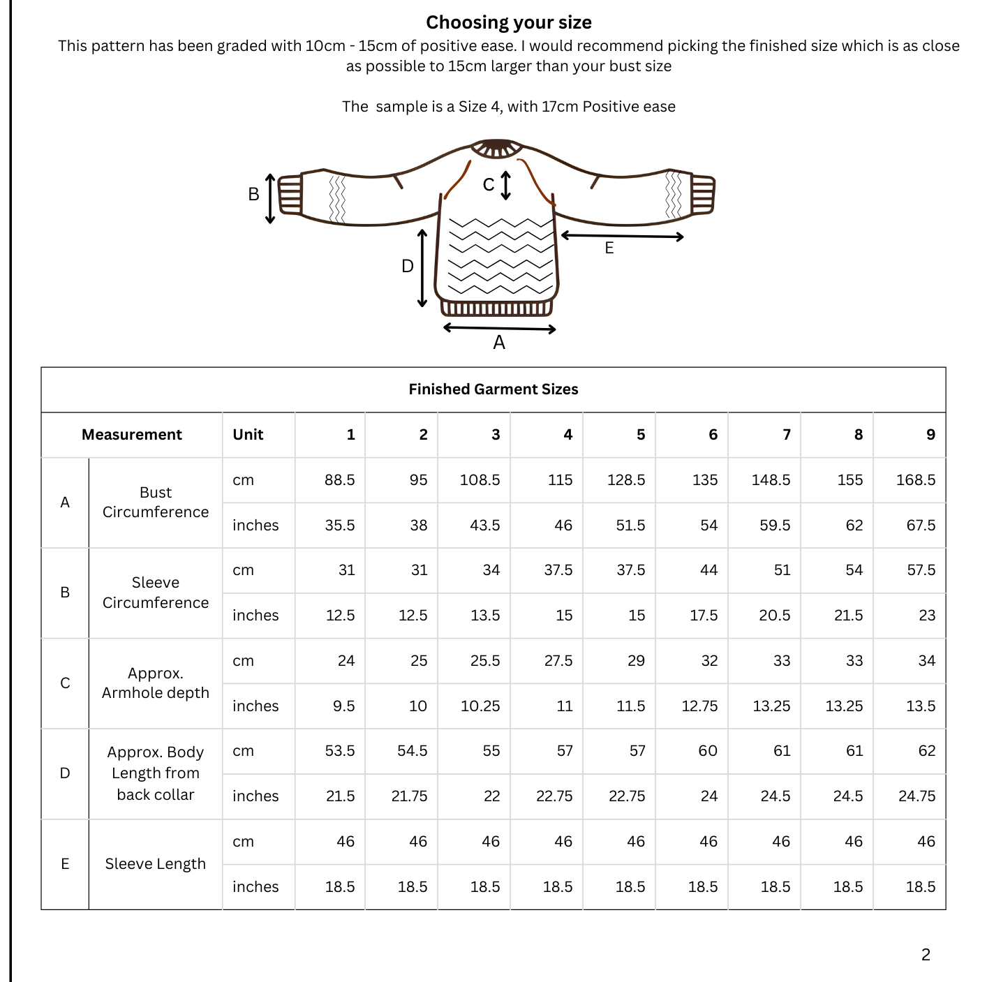 Ease: This pattern has been graded with 10cm -15cm of positive ease. I would recommend picking the finished size which is 15cm larger than your bust measurement. If you would like a more ease, I would recommend sizing up once more.
